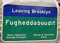 “Once you enter Brooklyn, there’s no good reason why you should ever leave,” says Brooklyn Borough President Marty Markowitz. So according to the New York Post, he’s “asked the city Department of Transportation to install at some of the borough’s major exit points signs that say: ‘Leaving Brooklyn … Fugheddaboudit.’” Yes, that’s um, interesting news…