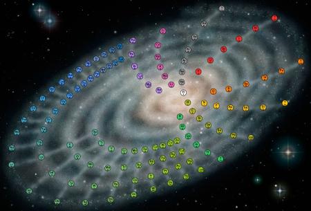 Dmitri Mendeleev’s model of the Periodic Table Of Elements has not changed significantly since the late 18th century, despite his own recognition that it “did not fully represent the overall pattern because it broke up the sequence. He thought the ideal would be a cylindrical helix, but that needs three dimensions.” The Slate article Is it time to revamp the periodic table? reports on Oxford ecologist Philip Stewart’s attempt to rearrange the Periodic Table, “using a starry pathway to link the elements and to express the astronomical reach of chemistry.” Pretty neat…