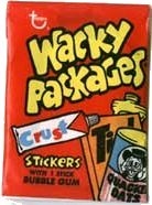 Before Garbage Pail Kids there were Wacky Packages, a series of trading cards that spoofed ads of everyday products. There is an official site, but Tom’s Wacky Packages has a lot more information and images.
