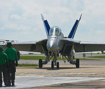 Salty Dog 123 (F/A-18F from VX-23) lines up for another launch on the TC-7 Steam Catapult at Patuxent River NAS.