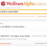 Posted on July 22, 2011December 11, 2018 by driko_zyufep Wolfram_Alpha knows all about Shaft (other portions of the lyrics work too!)… 🙂 [via The Daily What]