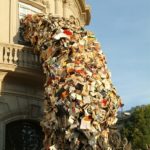 “Biografias,” an installation by Alicia Martin at Casa de America, Madrid. “5,000 Books Pour Out of a Building in Spain” (via Imaginary Foundation)