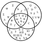 There are exactly 11 characters which are common to the Russian, Latin, and Greek alphabets.