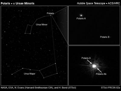 By stretching the capabilities of NASA’s Hubble Space Telescope to the limit, astronomers have photographed the close companion of Polaris for the first time. This sequence of images shows that the North Star, Polaris is really a triple star system.