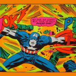 Posted on July 5, 2010December 11, 2018 by driko_zyufep Captain America – BEEYOK! One of a bunch of awesome Marvel black-light posters being sold by Penny Candy. [via Boing Boing]